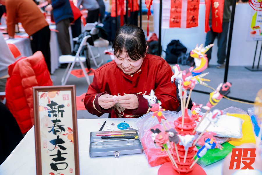“非遗匠心区”汇集剪纸、中国结、面塑、糖画等传统手艺,让职工感受传统文化魅力。“幸福直通车区”联合近20家“闵工惠”特约商户,提供优质优惠的年货商品,方便职工置办年货。